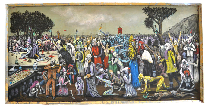 With every art piece Jannik shows us not just incredible promise but a peek into the dark fantastical world that he inhabits. Born in Denmark in 1989, Jannik's first introduction to the paints was through his father painting on porcelain and canvas. By 17, he started expressing himself on the canvas. Jannik's painting isn't the one you can see in a hurry. The elaborate world he creates demands your attention. He raises questions on how he sees himself and the world around him. Are the creatures in his artworks something you have seen before or other-worldly? He compels you to make your own stories.